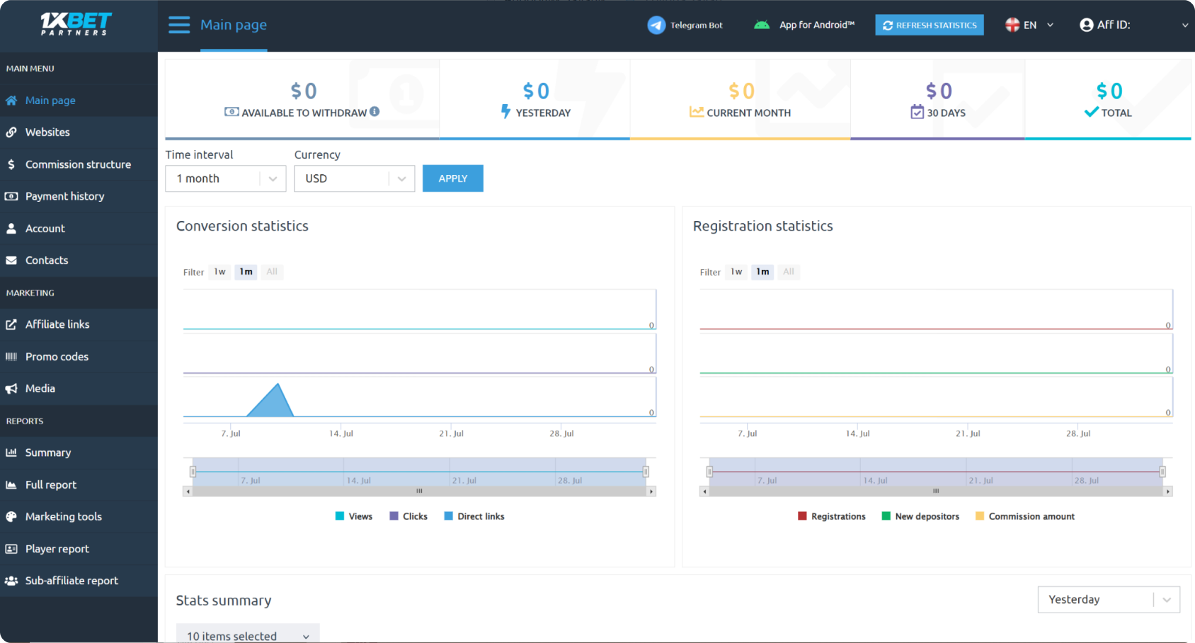Tərəfdaşlıq proqramının statistikası Hər saat yenilənir və komissiyanın hesablanması ertəsi gün baş verir.